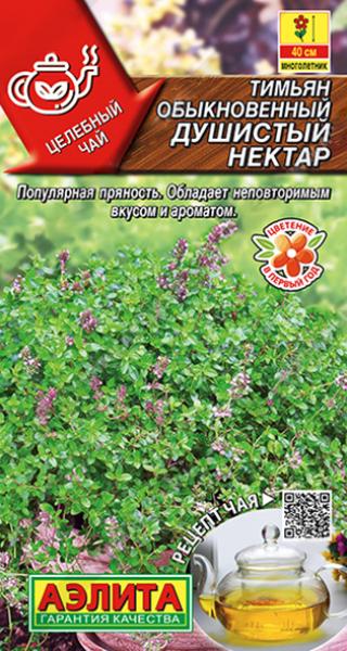 Семена Тимьян обыкновенный Душистый нектар. Пряно-ароматическая и эфиро-масличная культура. Обладает мощным дезинфицирующим эффектом. Отличный медонос. Растение представляет собой светолюбивый, засухоустойчивый, многолетний полукустарник высотой 20-40 см. Зацветает в июле, в это же время начинают собирать побеги с цветками и листьями. Сырье сушат в темных проветриваемых помещениях и затем хранят в х/б мешочках. Тимьян, благодаря специфическому аромату и жгучему горьковатому вкусу, используется в кулинарии как приправа к дичи, рыбе и овощам. Чай с тимьяном – один из самых ароматных и полезных.