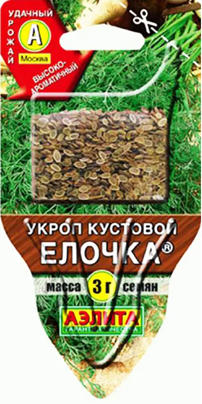 Семена Укроп Елочка кустовой сеялка. Среднеспелый сорт, от полных всходов до уборки на зелень проходит 33-40 дней, на специи – 65-85 дней. Листья крупные, с сильным пряным ароматом, долго сохраняют свежесть после срезки. Стебель прочный, междоузлия располагаются близко друг к другу, растение имеет форму плотного, густо облиственного куста высотой 95-105 см. Для потребления в свежем виде, сушки, соления, замораживания. Семена высокоароматичные, хороши в качестве специи для засолки огурцов, капусты. Агротехника. Посев семян в открытый грунт на глубину 1-1,5 см. Чтобы получать зелень в течение продолжительного времени, семена высевают несколько раз за сезон с интервалом 10-15 дней. Для получения более ранней зелени возможен подзимний посев – в конце октября-начале ноября. Растениям необходимы регулярные поливы, прополки, рыхления и подкормки.