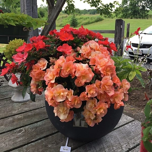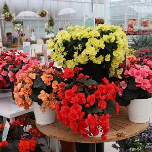 Описание сорта. Этот набор представляет собой поистине королевские гибридные бегонии. Растения формируют мощные, крепкие кусты, сплошь покрытые крупными, пышно-махровыми цветками невероятно ярких окрасок. Компактная форма и обильное цветение создают эффект сплошного цветущего шара.