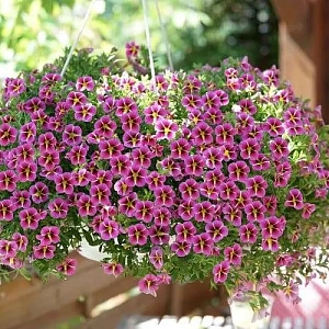 О наборе. Эта коллекция сортов калибрахоа повторяет богатую палитру летнего заката — от малиновых и пурпурных тонов до золотистых акцентов. Растения формируют изящные, ниспадающие каскады, усыпанные множеством мелких, петуниевидных цветков. Ценятся за исключительно плотный габитус, обильное ветвление и непрерывное цветение в течение всего сезона.