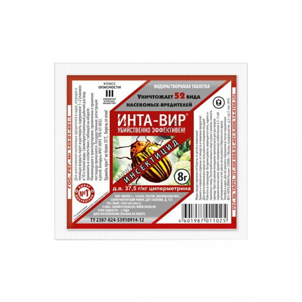 Инта-вир - это инсектицид для борьбы с насекомыми-вредителями (тли, трипсы, гусеницы, белокрылки) садовых культур и комнатных растений.