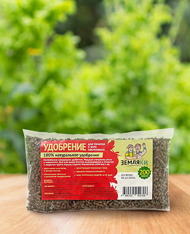 Комплексное 100% натуральное удобрение, мощный стимулятор роста и иммунитета. Для всех видов томатов, выращиваемых в открытом и закрытом грунте, перцев, огурцов, баклажанов, кабачков и др.