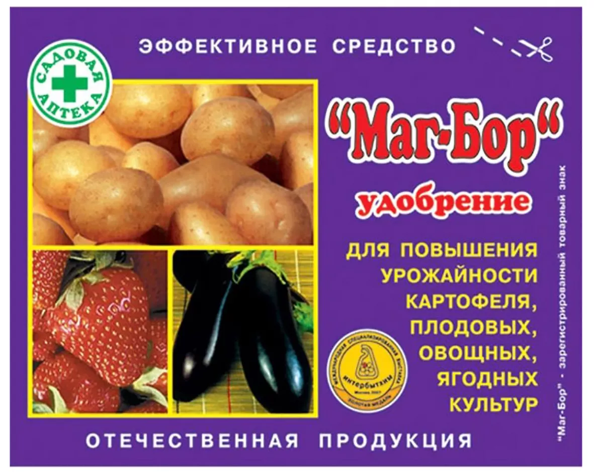 Удобрение Маг-Бор имеет разноплановое назначение и успешно применяется для подкормки различных овощных культур, включая картофель, плодово-ягодные растения, такие как яблони и ежевика, а также бахчевые культуры.