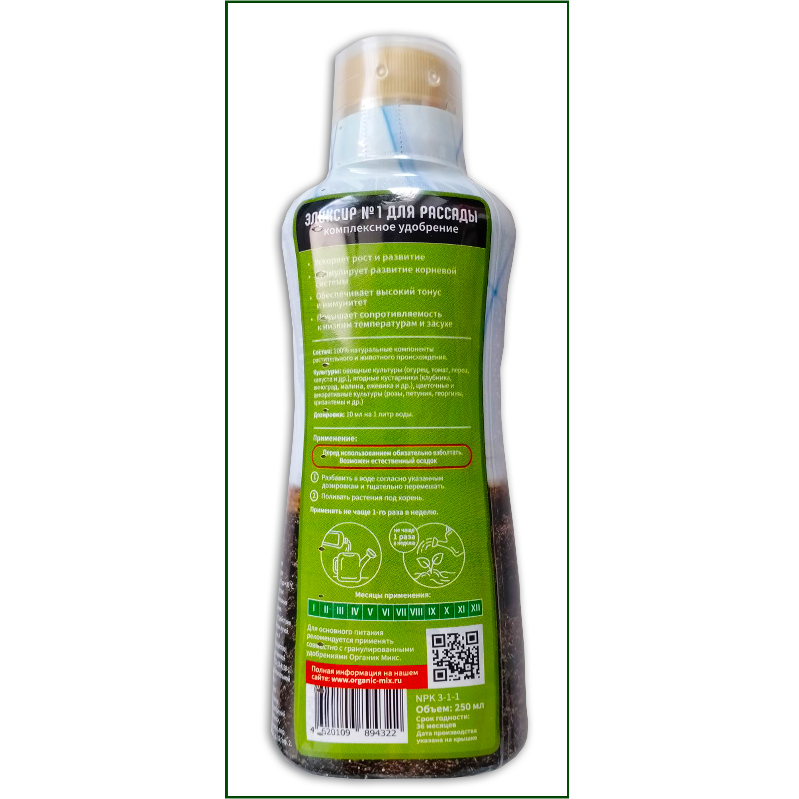 «Эликсир №1 для рассады» - редкий продукт на российском рынке, в котором азот находится в органической форме и обладает пролонгированным действием. Он не дает рассаде вытягиваться, при этом листья постоянно насыщенно-зеленого цвета.