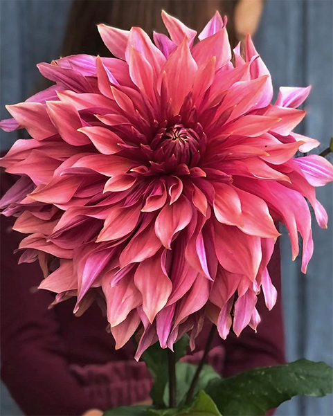 Георгин с величественными соцветиями глубокого винно-бордового оттенка, приближающегося к чёрному в основании лепестков. Крупные махровые цветки декоративной формы с широкими, слегка волнистыми лепестками, образующими роскошную корону. Куст сильный, с тёмной листвой, подчеркивающей драматичность окраски.