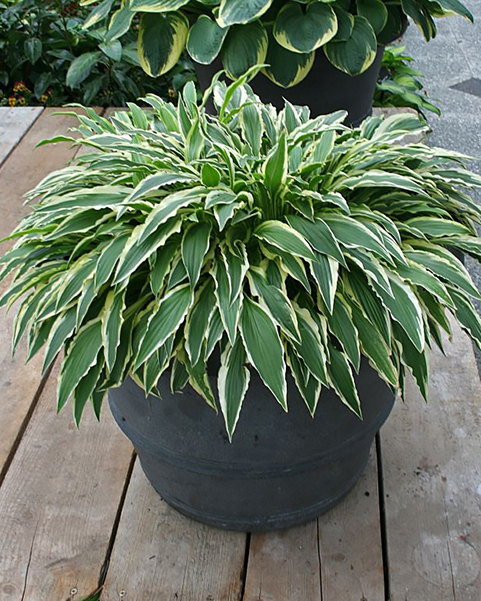 Изящный миниатюрный сорт хосты с узкими ланцетными листьями, образующими плотную симметричную розетку. Листья с волнистым краем и контрастной каймой, напоминают лезвие стилета. Идеально подходит для обрамления дорожек и контейнерного выращивания.