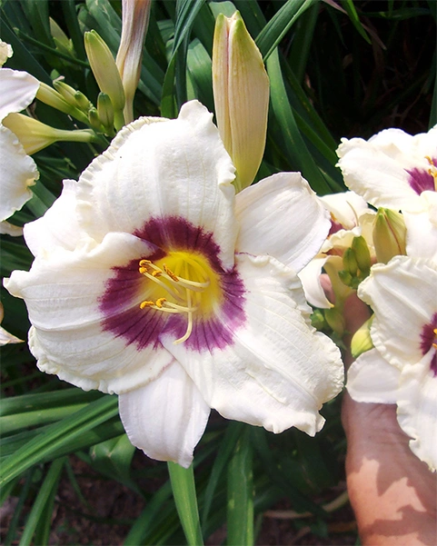 Окраска: Кремово-белая с вишнёво-пурпурным глазком и каймой