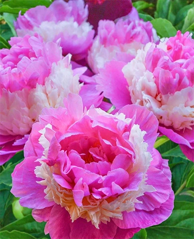 Не знающий себе равных трехслойный цветок с необычайным сочетанием форм и оттенков. Нежно-розовые и молочно-белые лепестки сверху и снизу обрамляют пышную кремовую юбочку. Диаметр распустившихся бутонов превышает 16 см. Куст мощный с крепкими цветоносами. Цветение приходится на первую половину июня. Зимостойкость до −35 °С.