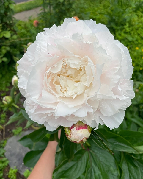 Травянистый пион с безупречными густомахровыми цветами ослепительно-белой окраски. Крупные шаровидные соцветия эффектно выделяются на фоне тёмно-зелёной резной листвы. Яркий, запоминающийся аромат дополняет изысканный образ этого сорта.