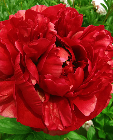 Эффектный сорт с шаровидными махровыми соцветиями диаметром до 20 см. Ярко-алые лепестки плотно уложены, лишь слегка приоткрывая насыщенно-розовую серединку. Цветы долго держат форму и не теряют декоративности. Стебли прямые, крепкие, не требуют подвязки. Растение устойчиво к морозам и не привлекает вредителей. Частый участник и победитель выставок.