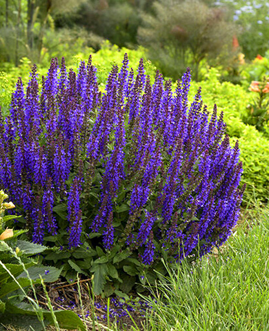 Сорт для ценителей естественных природных уголков сада. Рекомендуем обязательно познакомиться с этой незатейливой пряной травкой. Соцветия длиной 20 см варьируются от фиолетово-синих до сиреневых оттенков. Листья, собранные в темно-зеленую розетку, невероятно богаты эфирными маслами. Прекрасно смотрится шалфей также в садовых контейнерах и кашпо.