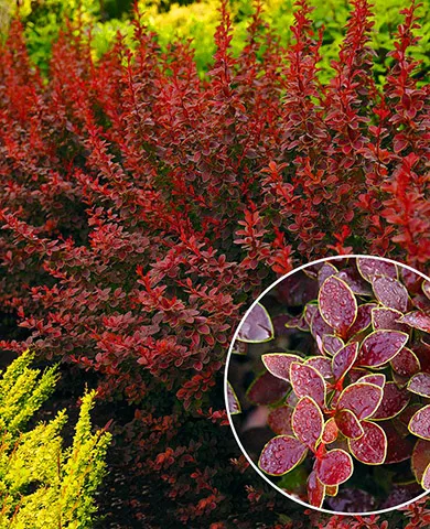 Этот кустарник —– истинное украшение на протяжении всего года! С раскидистой кроной и потрясающими пурпурно-красными листьями с золотистой каймой, он привлекает внимание в любое время. Осенью его листья превращаются в яркие алые огоньки. Цветет желто-красными цветами, а красные плоды, украшающие куст, остаются на нем до весны. . Даже при подмерзании в суровые зимы растение прекрасно восстанавливается.