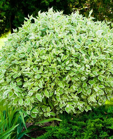 С наступлением осени цвет листвы не меняется. Первое цветение происходит через 3 года после посадки растения. Затем дерен Элегантиссима цветет с периодичностью 2 раза в год – в конце мая-начале июня, и в сентябре. Этот кустарник вынослив и нетребователен. Для того чтобы добиться обильного цветения и быстрого роста культуры, достаточно лишь правильно выбрать место для высадки растения и соблюдать ряд простых правил по уходу за ним. Лучше всего дерен белый Элегантиссима развивается на открытых освещенных участках. Плюсом сорта является невосприимчивость к уровню залегания грунтовых вод.