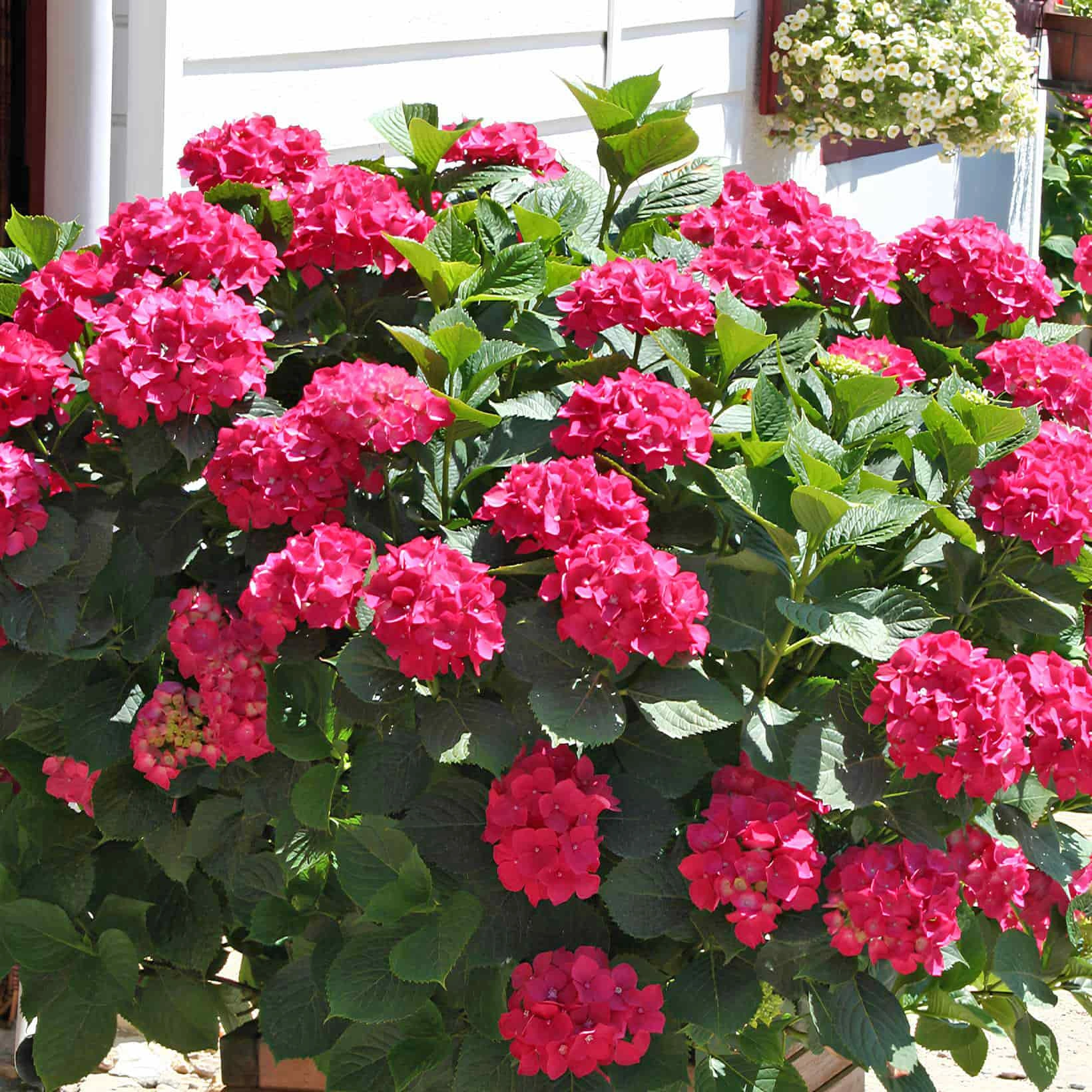 Королевская красота в вашем саду! Эта гортензия цветет до самых холодов крупными розовыми шарами соцветий, а осенью меняет оттенок на красноватый. Цвет листьев ярко-зеленый, осенью – красный с абрикосовыми оттенками. Куст крепкий, надежно держит цветки без опоры, отличается хорошей морозостойкостью.
