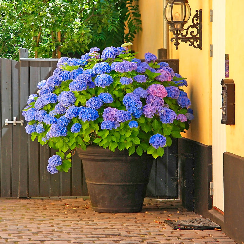 Ярко-синяя красавица с крупными плоскими шапками соцветий диаметром до 20 см. Цветение обильное, эффектный оттенок меняется в течение сезона от синего к лавандовому, в зависимости от кислотности почвы. Листва крупная, темная, глянцевая. Куст устойчив к дождю и ветру, не требует обрезки.