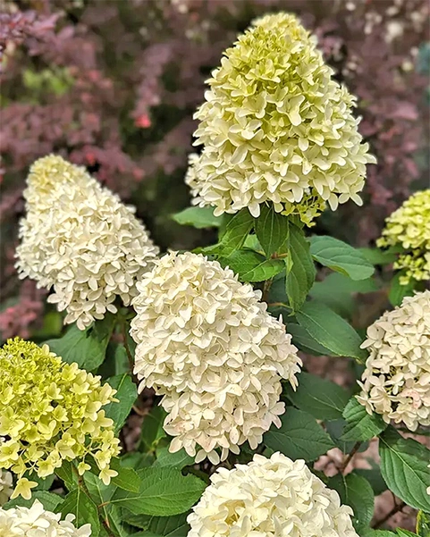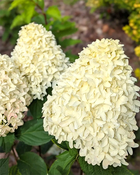 Очень необычная гортензия, украшенная множеством изумительных соцветий длиной до 30 см! Этот сорт не похож ни на один другой метельчатый сорт. Экзотичность ему придают гиацинтовидные цветки с загнутыми кончиками вытянутых лепестков. Объемные шапки соцветий от этого выглядят особенно великолепно. Вначале лепестки чисто белые или слегка зеленоватые, но со временем приобретают нежный сливочно-розовый оттенок. Побеги крепкие, вертикально растущие. Зимостойкость −35 °С.