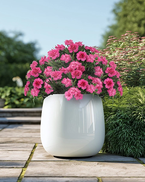 Яркий представитель популярной сортосерии «Oscar», отличающийся насыщенной флуоресцентной окраской. Махровые цветки интенсивного розового цвета создают эффект неонового свечения в цветниках и контейнерах. Компактный куст сохраняет идеальную форму на протяжении всего сезона.