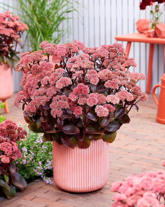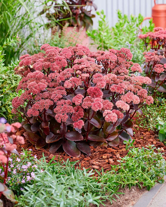 Эффектный очиток с очень темной блестящей листвой и выразительными розово-красными соцветиями. Декоративен уже с момента распускания листьев. Куст компактный, аккуратный, крепкий. Хорошо держит форму даже после того, как отцвел. Сорт устойчив к болезням, не подвержен гниению, поэтому идеально подходит для выращивания в горшках на террасе или балконе, для создания каменистых садов, ковровых клумб или бордюров из многолетников. Неприхотлив и засухоустойчив. Подходит для выращивания в средней полосе России.