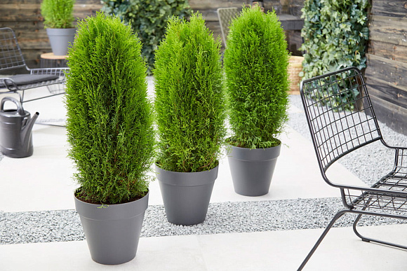 Плотная масса изумрудно-зеленой хвои, которая и при отсутствии обрезки сохраняет идеальную форму. Отличается компактностью, разрастается очень умеренно. Сорт довольно новый, хорошо растет в полутени и даже тени, сохраняет интенсивный цвет и не буреет зимой.