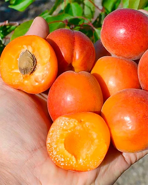 Окунитесь в настоящую абрикосовую волну! Уже на второй год после посадки это дерево подарит вам первые невероятно крупные плоды — до 90 граммов. Они покоряют своим видом — с красивым красным румянцем, а вкус — это идеальная гармония сладости и сочности. Самоплодный и неприхотливый сорт начинает созревать с конца июня, отличается высокой зимостойкостью и компактным размером (до 2 м), что делает его идеальным для любого сада. А его урожайность до 20 кг — это щедрость, которой можно гордиться!