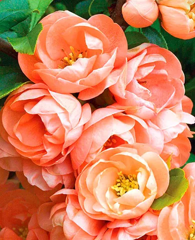 Это растение напоминает экзотическую восточную красавицу. Изящные ветви покрыты темно-зелеными листьями. В начале мая на них распускаются крупные махровые цветки золотисто-персикового оттенка, достигающие 5 см в диаметре. Пышное цветение продолжается около месяца, но даже после его окончания растение сохраняет декоративность. К осени листья приобретают золотисто-вишневый оттенок, а на ветвях появляются яркие оранжевые плоды, которые радуют глаз до начала ноября. Они не только красивы, но и съедобны, их часто используют для варенья. Этот сорт айвы широко используется в декоративном садоводстве как в одиночных посадках, так и в групповых композициях. Растение неприхотливое в уходе, морозостойкое и засухоустойчивое, предпочитает нейтральные почвы. Зимой необходимо легкое укрытие приствольных кругов.