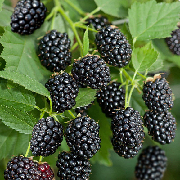 Новый бесшипный высокоурожайный сорт с повторным плодоношением. Растения низкорослые с жесткими побегами и активным корнеобразованием. Ягоды крупные, массой 4 г, плотные, очень сладкие с высокими показателями по шкале Brix (14,1%!). Сбор легкий. Урожайность – около 2 кг с одного растения, период сбора – 6–7 недель. Созревают в сентябре на новых побегах, на прошлогодних – в июле. Сорт самоплодный. Отличается здоровьем и хорошей зимостойкостью. В регионах с суровыми зимами рекомендуем легкое укрытие.