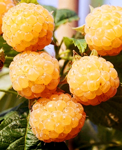 Крупноплодность – визитная карточка этого сорта желтой малины. Кусты усыпаны крупными, медово-золотистыми, полупрозрачными ягодами массой 5–10 г. Вкус сладкий, как нектар. Дегустационная оценка достигает максимума –— 5 баллов из 5! Сорт среднеранний и полуремонтантный, отличается высокой производительностью: за сезон урожай можно собрать 4–5 раз, в среднем получая 5–12 кг ягод с куста. Неприхотлив в уходе и не требует укрытия на зиму.