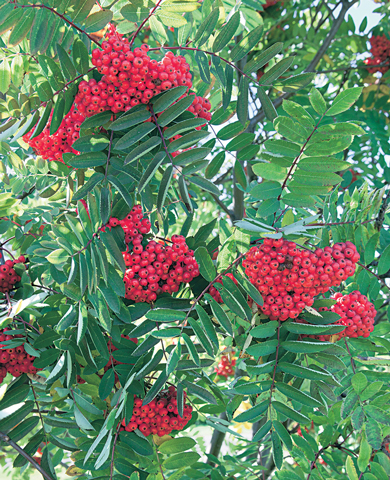 Плоды этого сорта отличаются сахарной сладостью, поэтому их используют в различных рецептах для приготовления кондитерских изделий и фруктовых напитков. Когда в конце октября сад уже пуст, яркие гроздья рябины подарят вам последнюю витаминную радость и сладость. Само дерево, конечно, тоже очень ценится за свои декоративные свойства. Вырастает оно до 4 м, имеет красивую раскидистую крону. Устойчиво к болезням и вредителям. Зимостойкость высокая.