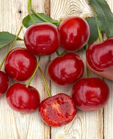 Яркий сорт с насыщенным сладким вкусом, совершенно без терпкости. Крупные (4–5 г) пурпурно-красные ягоды с маленькой косточкой и ароматной сочной мякотью созревают в середине июля, период плодоношения длится около 2 недель. Форма растения близка к кустарниковой, крона компактная, высота до 2 м. Этот сорт самоопыляется и отличается высокой устойчивостью к болезням и вредителям. Зимостойкость до −45 °С.