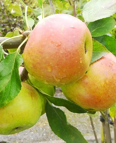 Сорт отличается высокой устойчивостью к заболеваниям, хорошей лежкостью и длительным сроком хранения. Плоды крупные, округлой формы, солнечно-желтые с легким розовым румянцем. Вкус кисло-сладкий, с выраженным ароматом и тонкими ананасовыми нотками, которые придают приятное освежающее послевкусие. Мякоть белая, мелкозернистая, хрустящая и сбалансированная по вкусу, без лишней кислотности. Урожай собирают в сентябре. Сорт плодоносит стабильно и ежегодно. Дерево высокорослое, до 6 м, не боится перепадов погоды и может давать урожай в течение десятилетий.