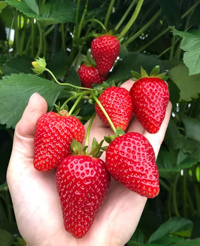 Поразительная ягода-пышка – на первой волне сбора можно встретить экземпляры весом до 90 г! Ярко-красного цвета, блестящая, умеренной плотности (без внутренних пустот), сочная, с великолепным сладким вкусом и легкой кислинкой. Сорт со среднеранним сроком созревания, высокоурожайный, хорошо хранится. Обладает устойчивостью к пятнистостям, грибковым заболеваниям и проблемам с корневой системой.