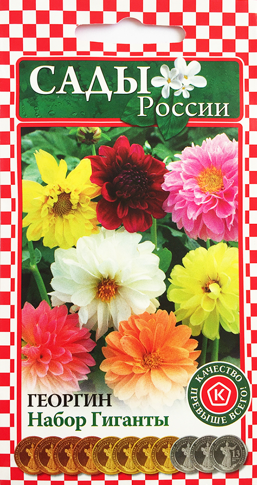 Семена Георгина Набор Гиганты. Любимые всеми жизнерадостные приверженцы тепла и света, хорошо известные «весёлые ребята». Набор ГИГАНТЫ – нарядный и звонкий «вокальный ансамбль» из махровых и полумахровых цветков белых, нежно-розовых, золотисто-жёлтых, лососевых, абрикосовых, кораллово-красных, карминных и насыщенных пурпурно-вишнёвых оттенков. Растения высокие, стройные, с прочными цветоносами и шикарными ярко-зелёными листьями. Очень обильно цветут с июля до заморозков.