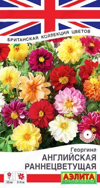 Семена Георгина Английская раннецветущая смесь сортов. Экстраранняя низкорослая георгина – яркая основа дизайна садовых клумб и палисадников. Смесь включает все возможные оттенки летнего настроения. Растения высотой до 50 см, компактные, ветвистые, крепкие, стойко переносят непогоду. Соцветия полумахрового типа, насыщенных глубоких цветов, крупные, диаметром 8-9 см. Cмесь неприхотливая, эффектная, отлично растет в ограниченном объеме грунта, может использоваться для срезки в небольшие букеты.