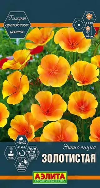 Семена Эшшольция Золотистая. Порция хорошего настроения с оранжевыми цветами! В настоящее время модно создавать цветники, где присутствуют эффектные цветы одной окраски, например, ярко-оранжевые. Они наполняют клумбы праздничной атмосферой и создают контрастные композиции с другими растениями. Считается, если вам нравится оранжевый цвет, вас обязательно ждет успех! Очаровательный летник с апельсиновыми цветками. Эшшольция выглядит хрупкой, нежной и капризной, но по праву считается культурой для ленивых. Она устойчива к засухе, болезням и вредителям. Не утрачивает пышного цветения даже на бедных почвах. Растения высотой до 40 см, с зеленовато сизыми ажурными листьями. Цветки изящные, яркие и крупные, диаметром 3-5 см. Закрывают лепестки в непогоду. Сорт используется для украшения разнообразных цветников, альпинариев и мавританского газона.