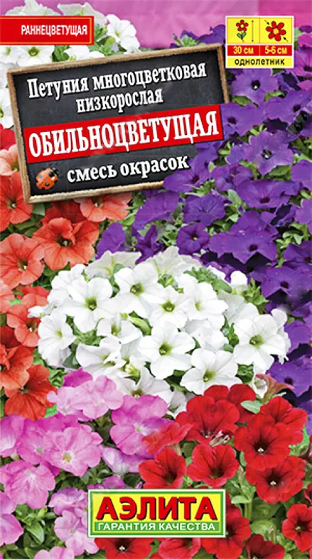 Специально подобранная смесь популярного летника. Порадует вас цветочным изобилием с мая до осенних заморозков. Компактные кусты высотой 25-30 см хорошо подходят для посадок в бордюрах на клумбах и рабатках, успешно растут в балконных контейнерах, подвесных кашпо, подоконных ящиках. Цветки 5-6 см устойчивы к жаре, не травмируются дождем и сильным ветром. Растения цветут на 70-75-й день после посева.